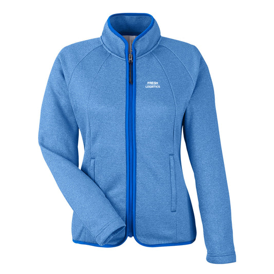 CORE365 Ladies' Venture Heathered Stripe Full-Zip - True Royal/White