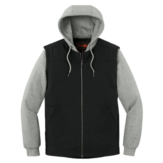 CornerStone® Duck Fleece Full-Zip Hooded Jacket - Black/Heather Grey