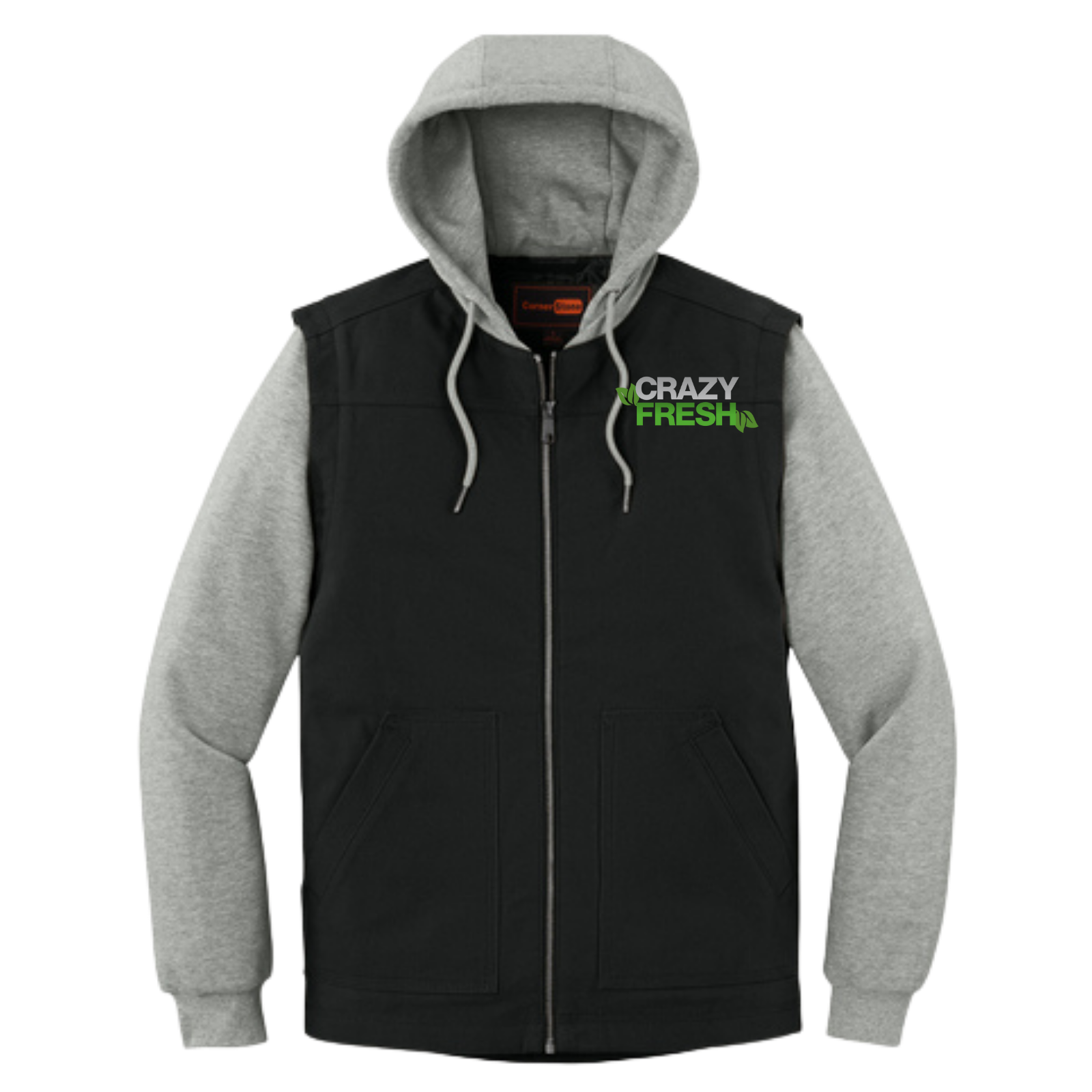 CornerStone® Duck Fleece Full-Zip Hooded Jacket - Black/Heather Grey